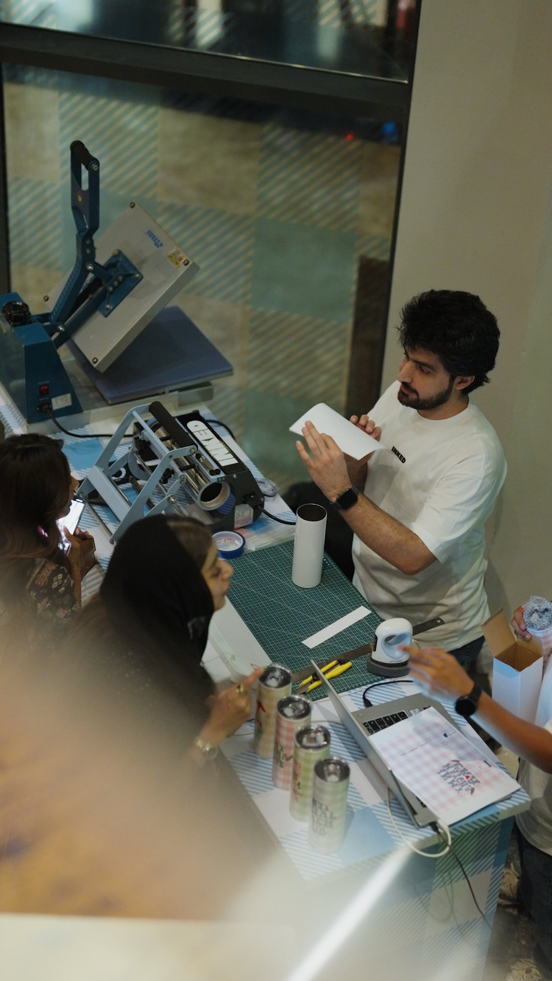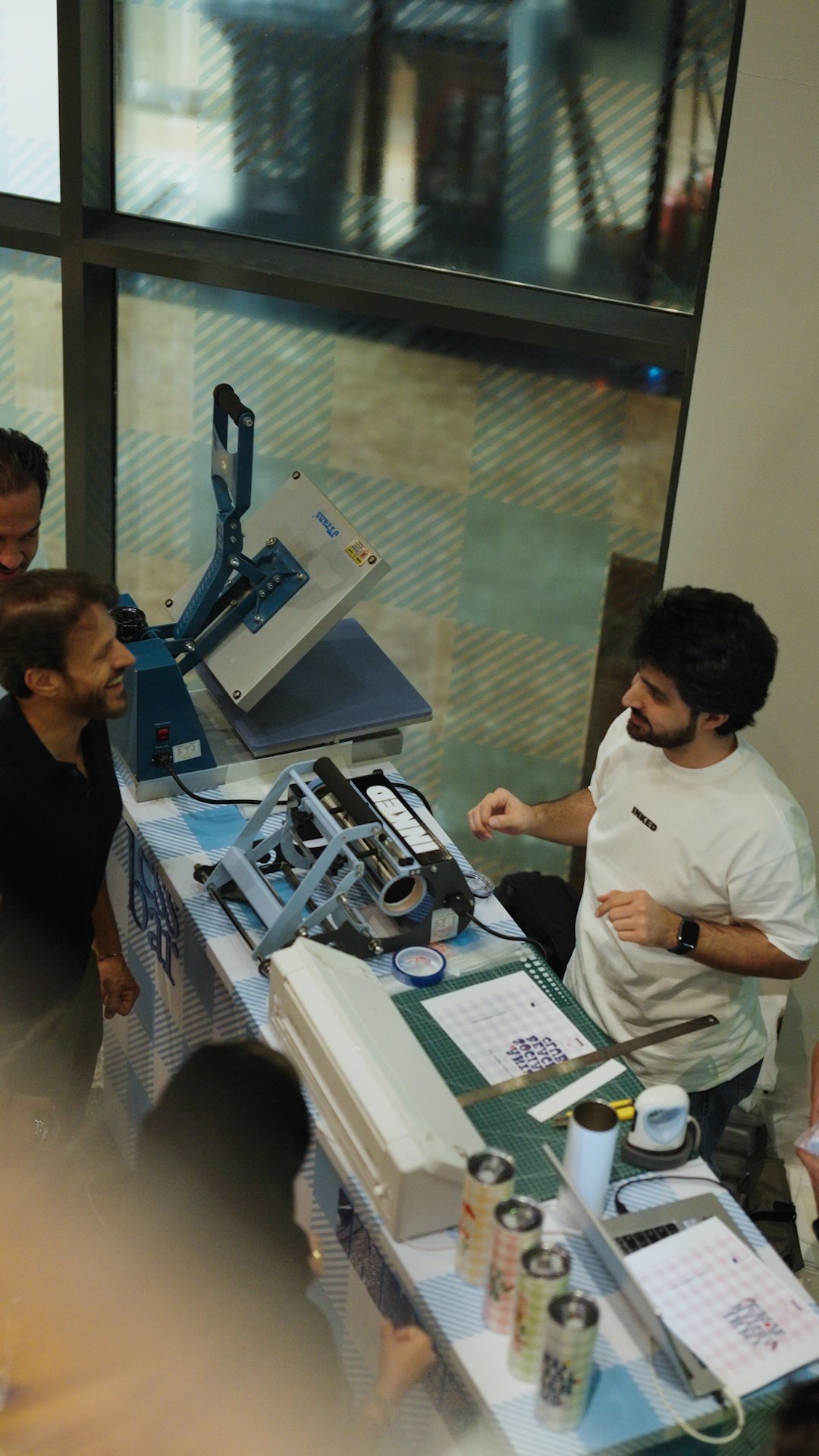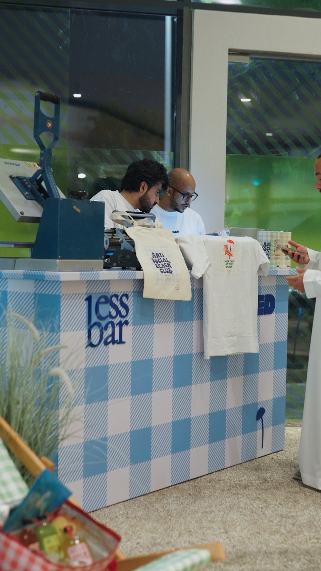 T-SHIRT, TOTE BAG, AND TRAVEL MUG MERCH WITH LIVE PRINTING.