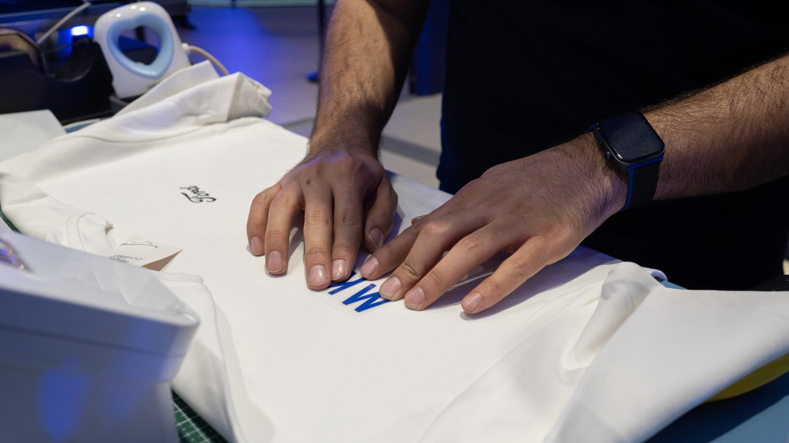 T-SHIRT, TOTE BAG, AND TRAVEL MUG MERCH WITH LIVE PRINTING.